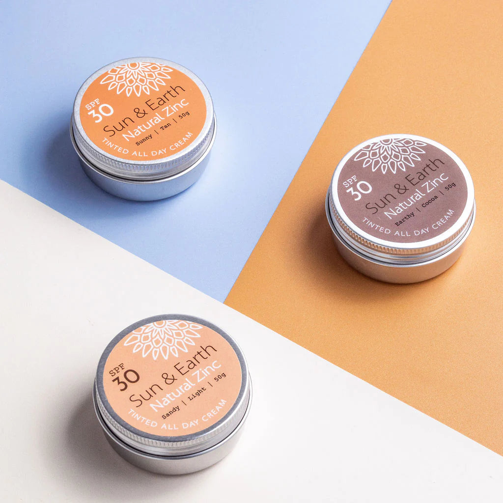 Our range includes 3 Skin Tones: Sandy Light, Sunny Tan & Earthy Cocoa. Most skin shades are achievable by either finding which shade suits you or getting creative and making your own fun fusion of these colours. The All Day Cream gives the skin a healthy and lustrous glow.